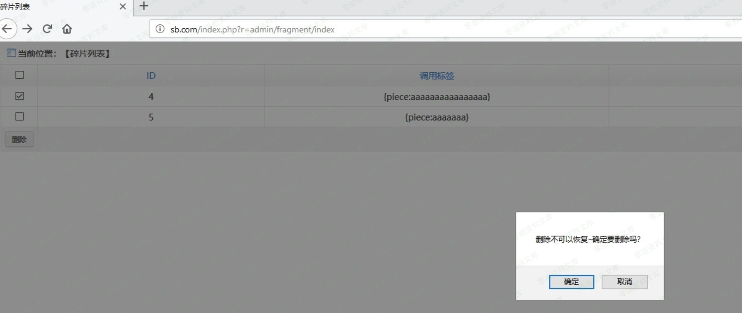 POST /index.php?r=admin/fragment/del HTTP/1.1