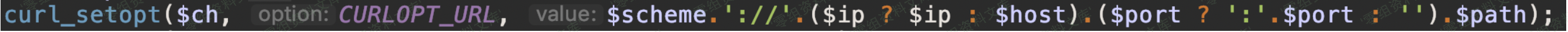 发起了curl请求,就是这里触发了ssrf,这里的现有使用后parse\_url解析了一次\$url,和上面的解析是一样的,然后又进行了拼接成为了curl的地址。
