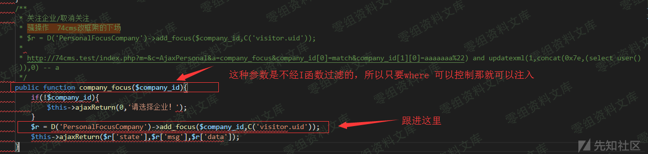 : )这里我并不会脱离74cms重新讲一次相关的框架内容,所以读者最好,看看我之前的文章。ThinkPHP3.2.3框架实现安全数据库操作分析https://www.yuque.com/pmiaowu/bfgkkh/coglz1先看完上面的文章,然后在看此文章,会更简单的了解清楚。