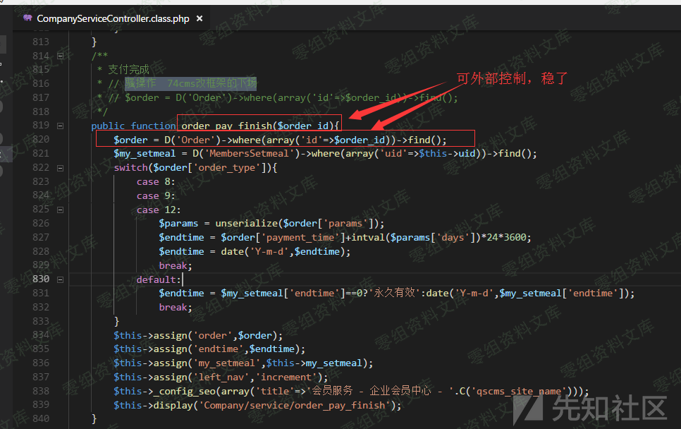 文件:74cms\\upload\\Application\\Home\\Controller\\CompanyServiceController.class.php方法:order\_pay\_finish(是否需登录:需要登录权限:企业用户即可看源码
