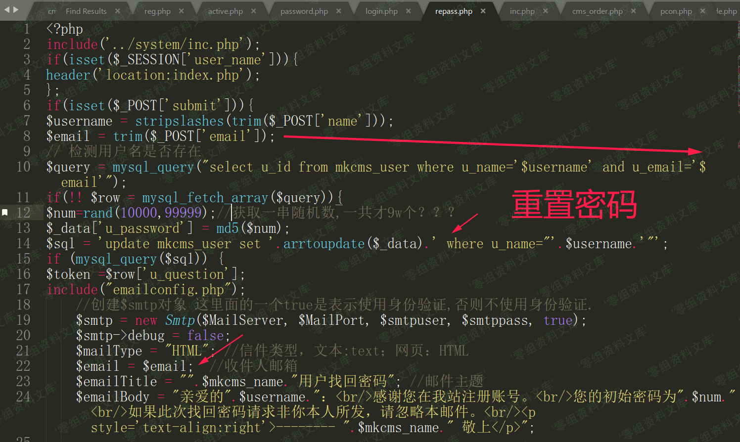 任意用户密码找回这个问题主要是`/ucenter/repass.php`代码里,找回密码的逻辑有问题,第10行查询到`username`、