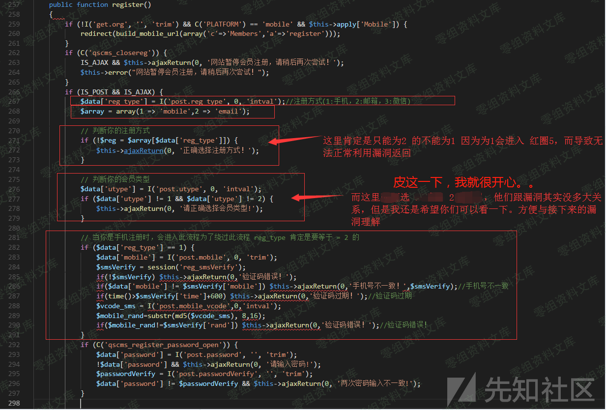 函数是有可能造成此漏洞的那么这时,我们就需要去找调用它的地方了。经过一顿的搜索我们得出了两个地方是调用了他地方一:register() 方法 会员注册方法地方二:oauth\_reg() 方法 第三方登录注册方法论此漏洞的利用当然是register() 方法利用起来比较简单 因为 方法二