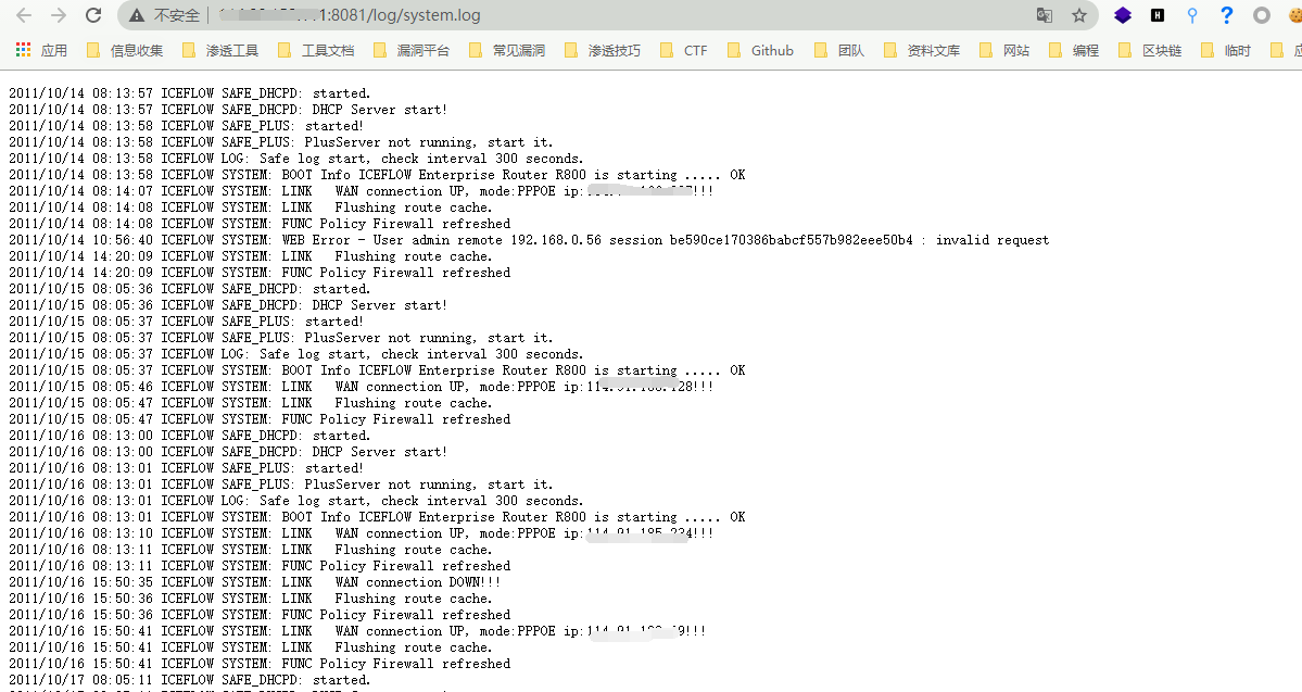 ICEFlow VPN 存在信息泄露漏洞,攻击者可以查看日志中的敏感数据来进一步攻击系统
