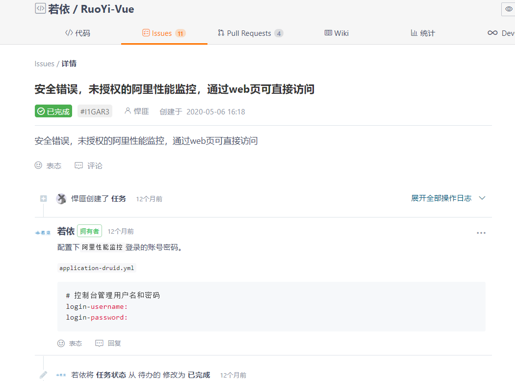 若依管理系统使用了Druid 默认开启了匿名访问,导致未授权获取敏感信息