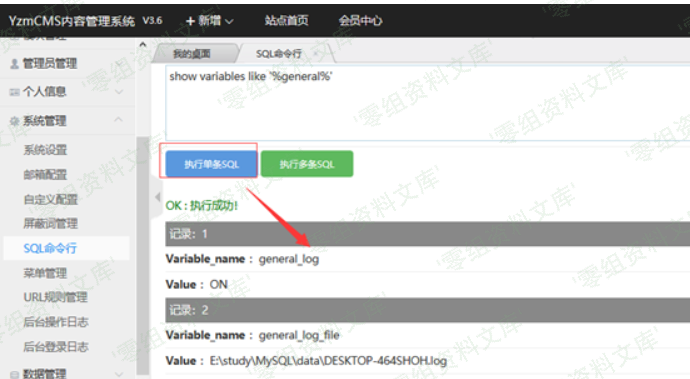 set global general_log_file =CONCAT(“E:\\study\\WWW\\YzmCMS\\test.”,”php”);