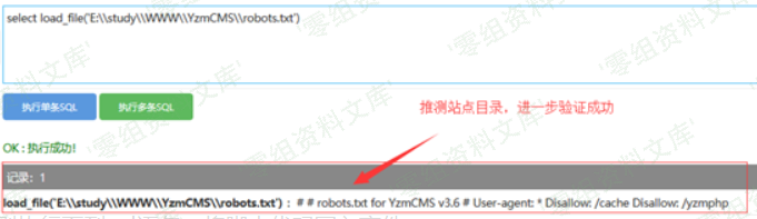 #### 2、根据日志文件位置或者默认站点路径来推测站点目录,可用load\_file()函数来测试,确认站点目录位置。或者通过phpinfo()等信息收集获取站点目录。
