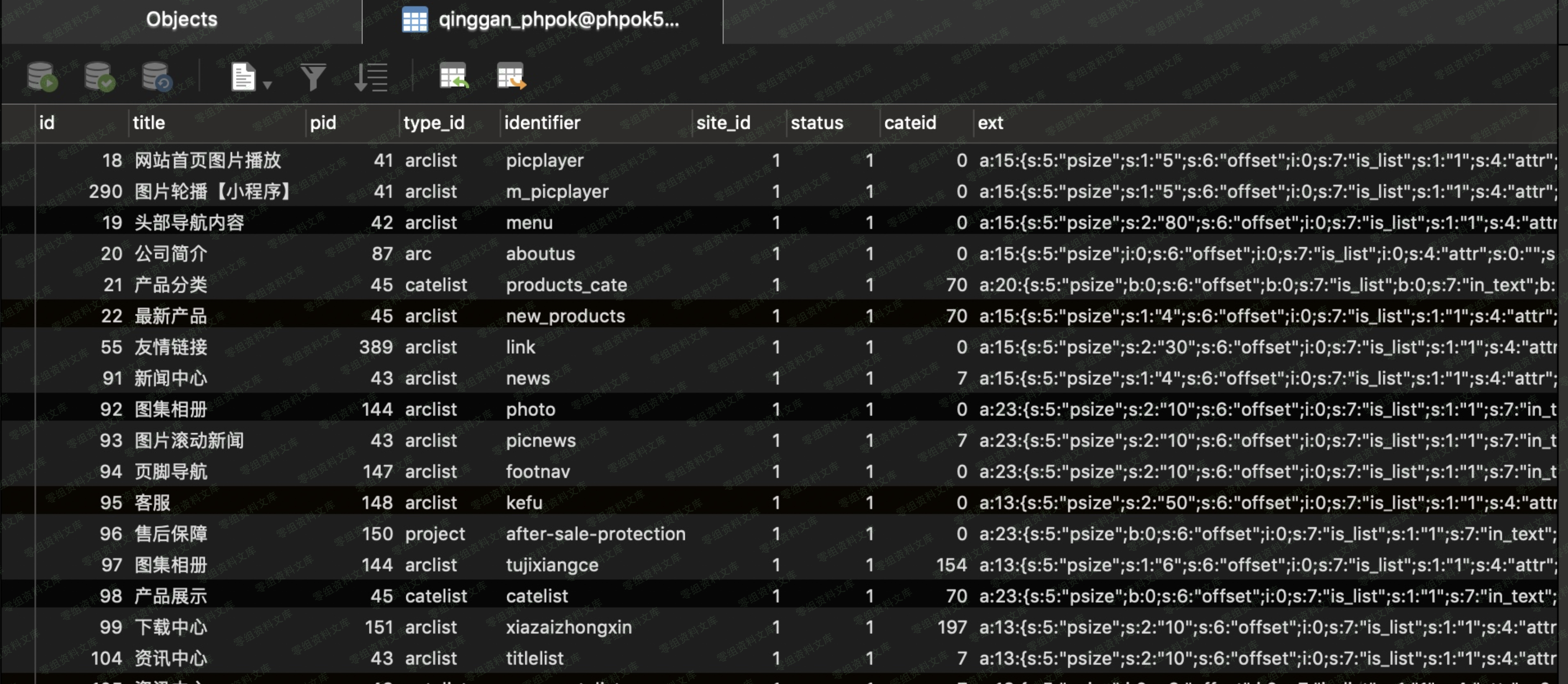 这一段代码\$this-\>model(\’call\’)-\>all(\$siteid,\’identifier\’);实现的是查询phpok表,其中identifier