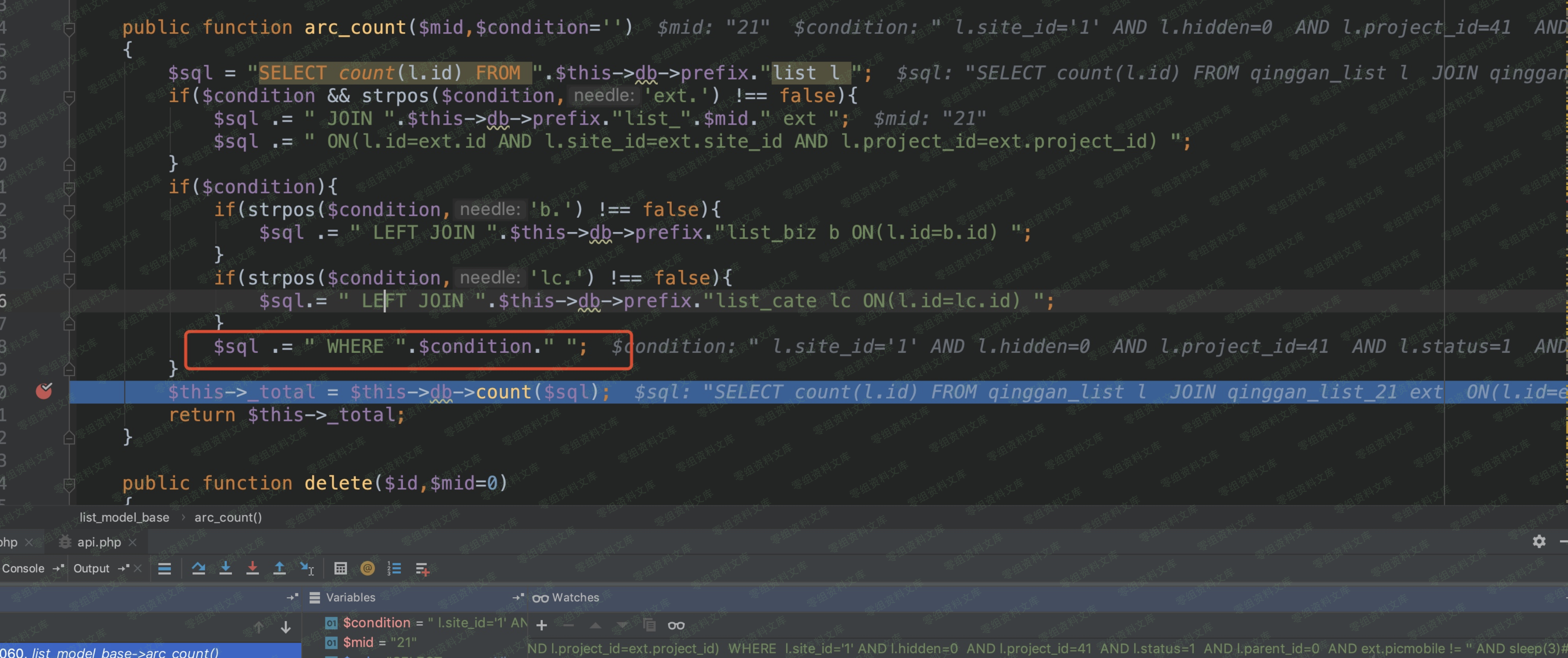 ,arc,catelist,project我们而需要找到拼接sqlext变量的函数: