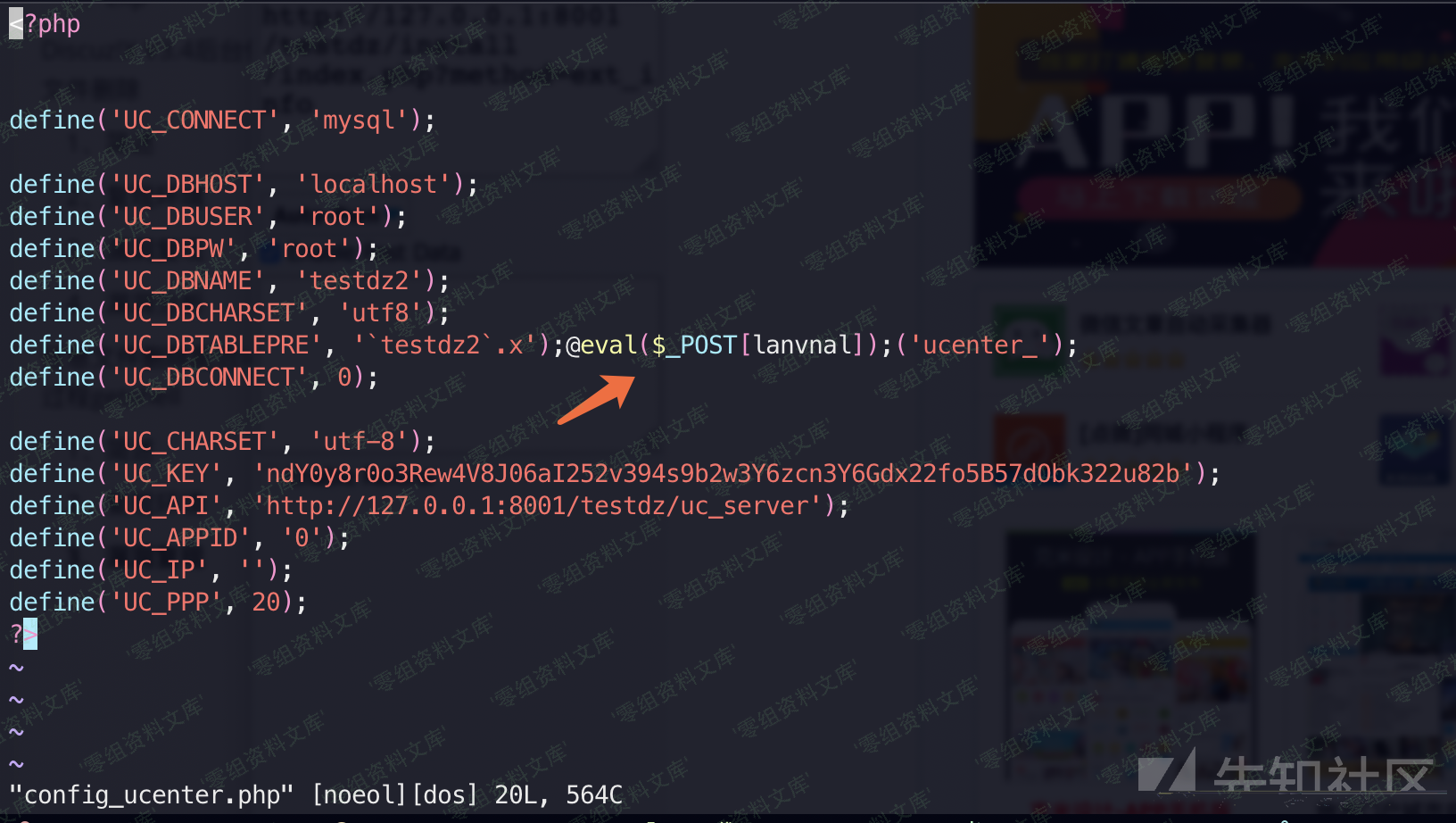 在`config/config_ucenter.php`中已经写入了webshell。