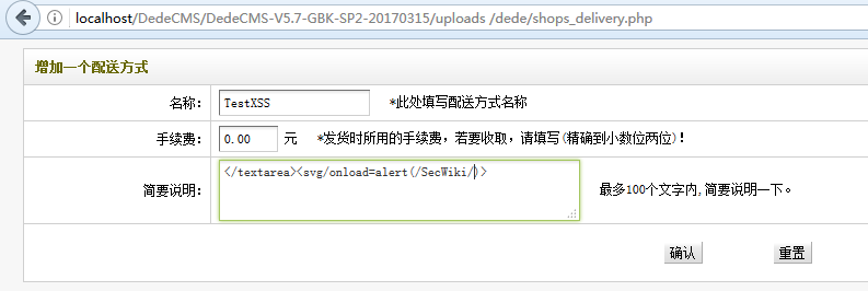 # DedeCMS v5.7 shops delivery 存儲型XSS漏洞/en