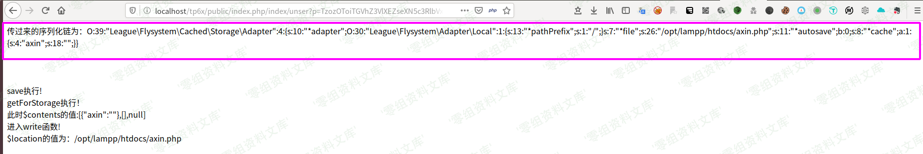 效果演示:自己构造一个反序列化输入点,发送请求(页面的输出是我自己方便调试打印的)