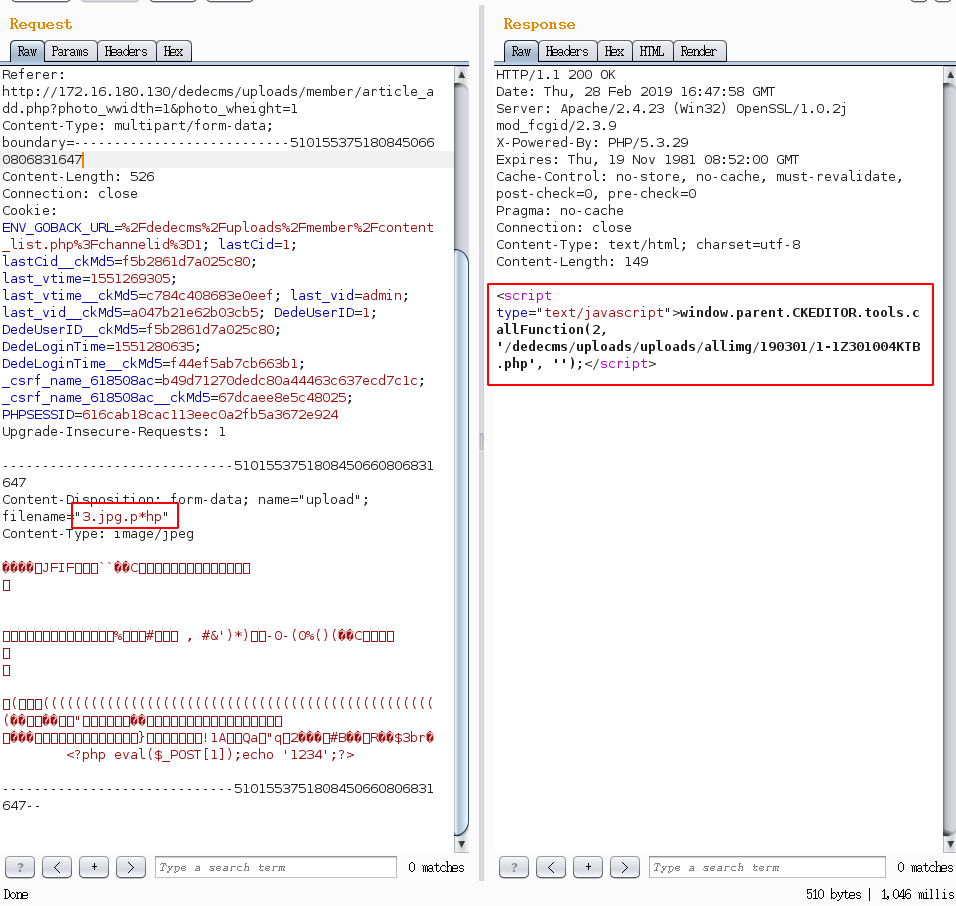 向如上分析修改文件名与content-type,即可返回 shell 地址