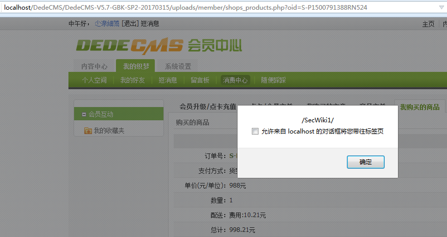 5. 管理员进入后台查看商城订单同样也会被 XSS :p