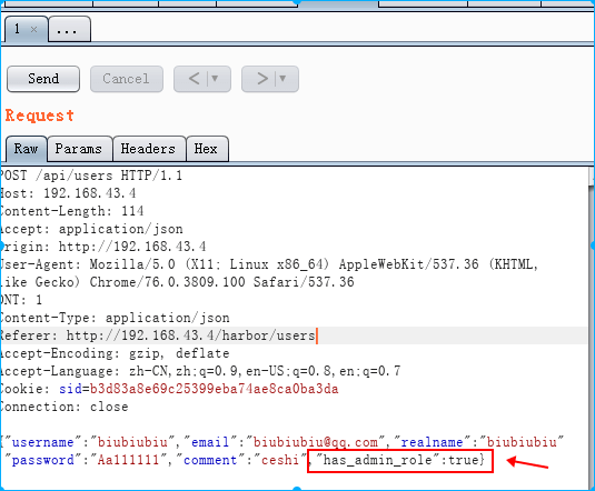 data='{“username”:”biubiubiu”,”email”:”[email protected]”,”realname”:”biubiu1biu”,”password”:”Aa111111″,”comment”:”biubiubiu”,”has_admin_role”:true}’