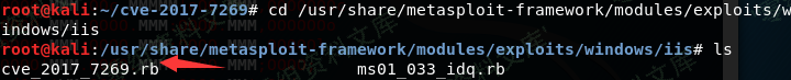 cd /usr/share/metasploit-framework/modules/exploits/windows/iis/ //进入目录