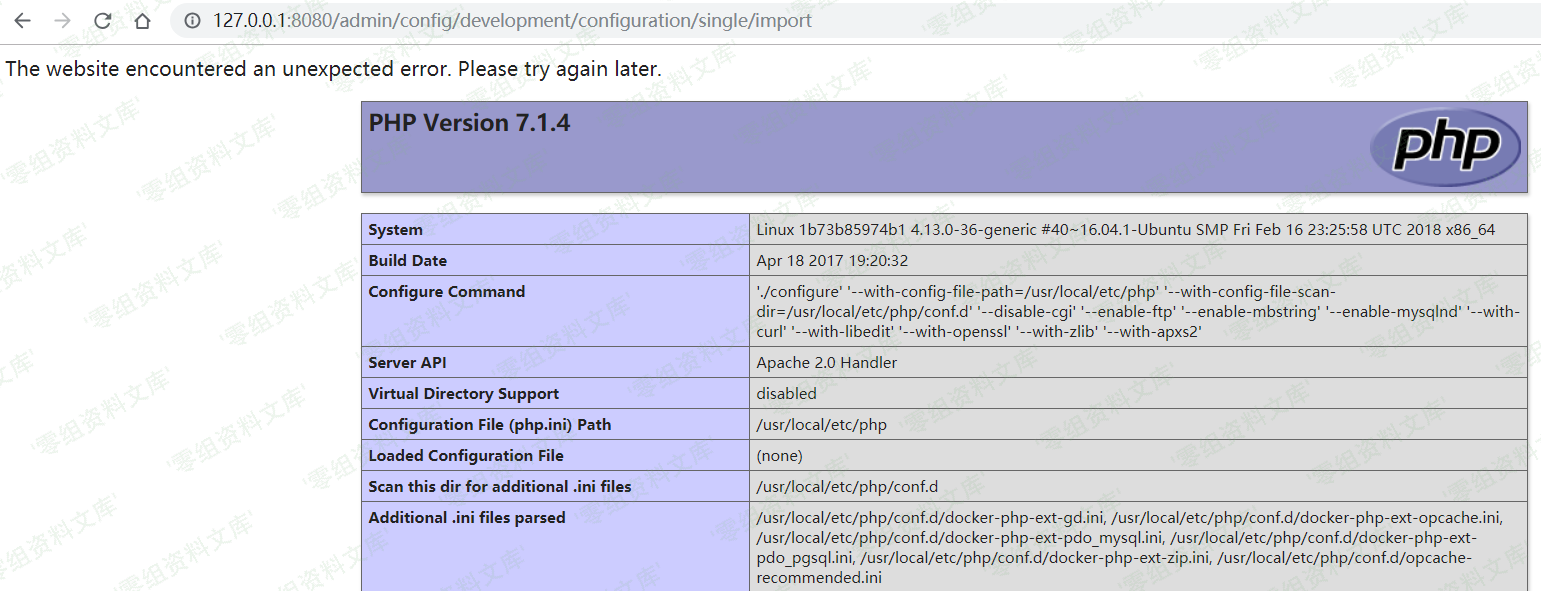4.点击 Import 后可以看到漏洞触发成功,弹出 phpinfo 页面