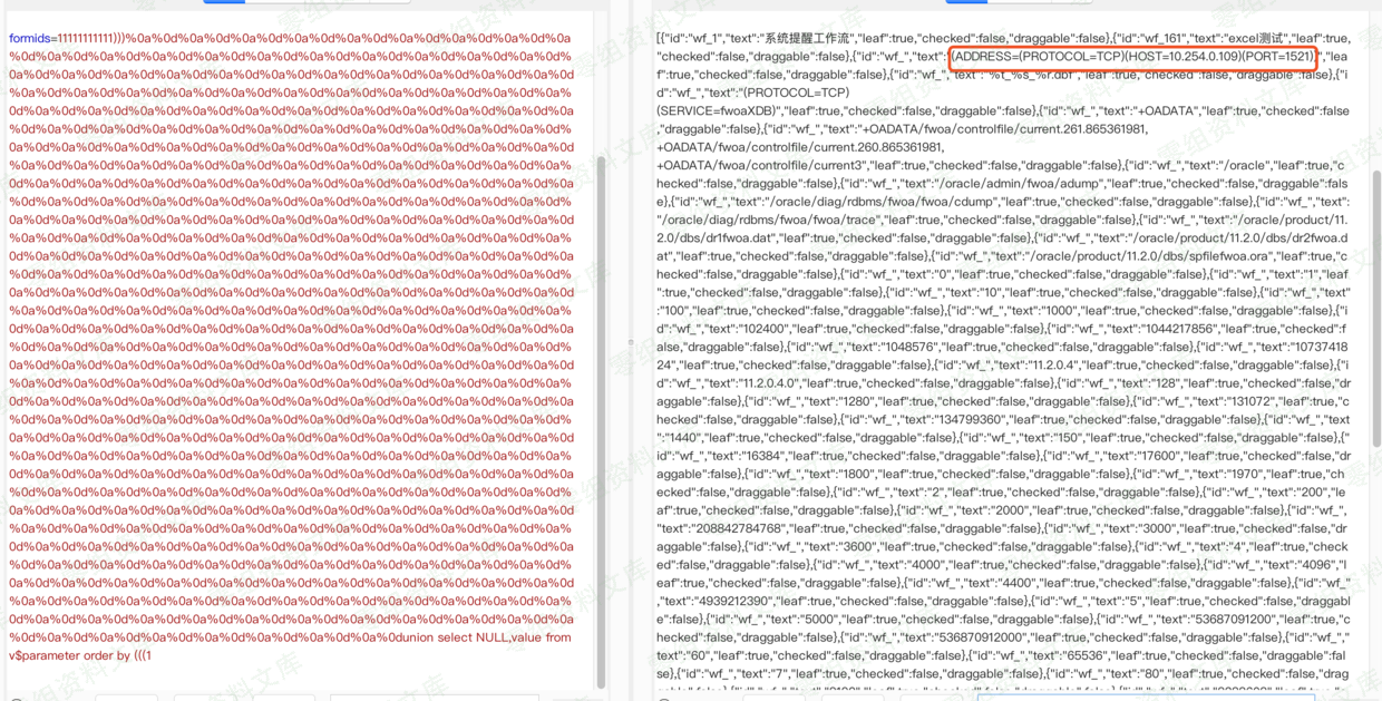 002-泛微oa WorkflowCenterTreeData 接口注入漏洞(限oracle数据库)