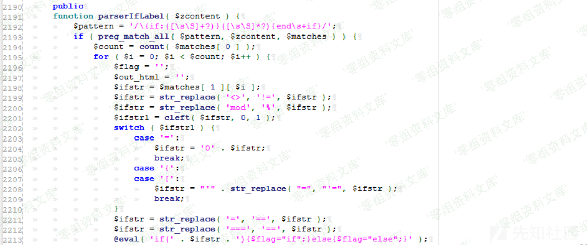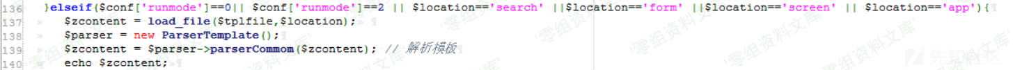 发现解析模块是通过ParsetTemplate来解析的,那么我们找到ParserTemplate类的php文件zzz_template.php。在zzz_template.php中我们发现一个IF语句