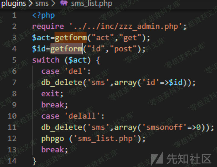 注入点的入口在plugins\sms\sms_list.php文件中,