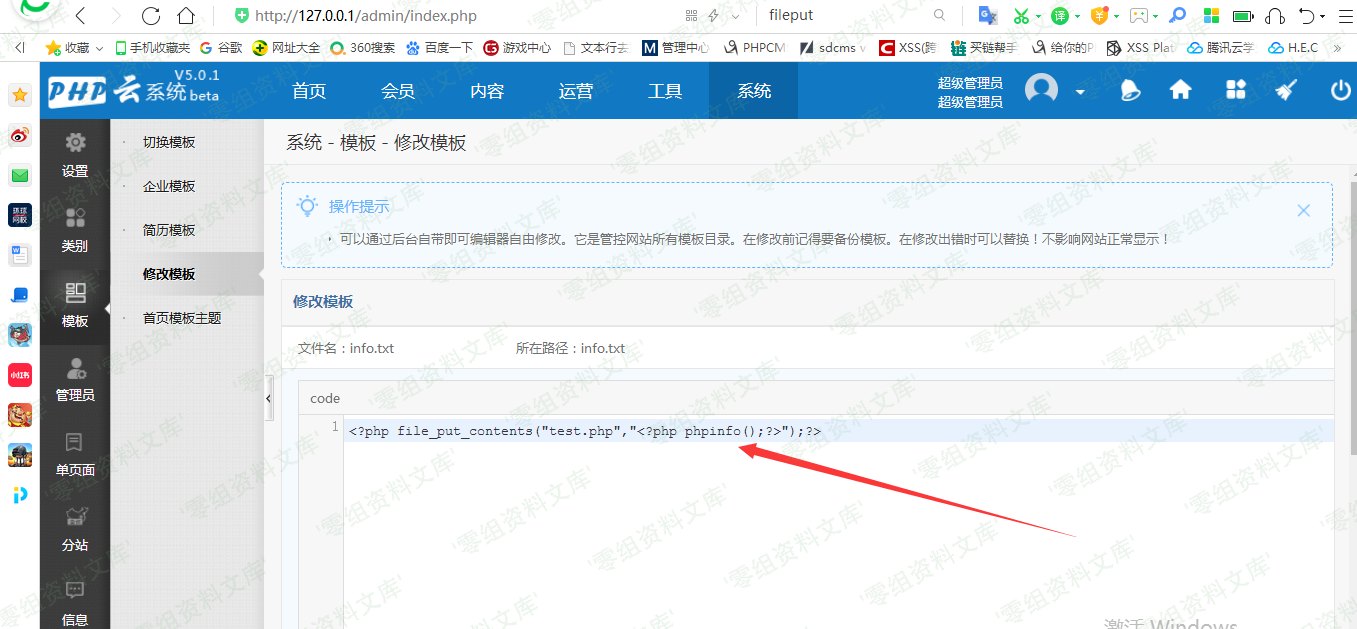生存成功,但是发现()被大写,使用经典的include包含,随意找了一个模板下的info.txt文件,写入执行代码。
