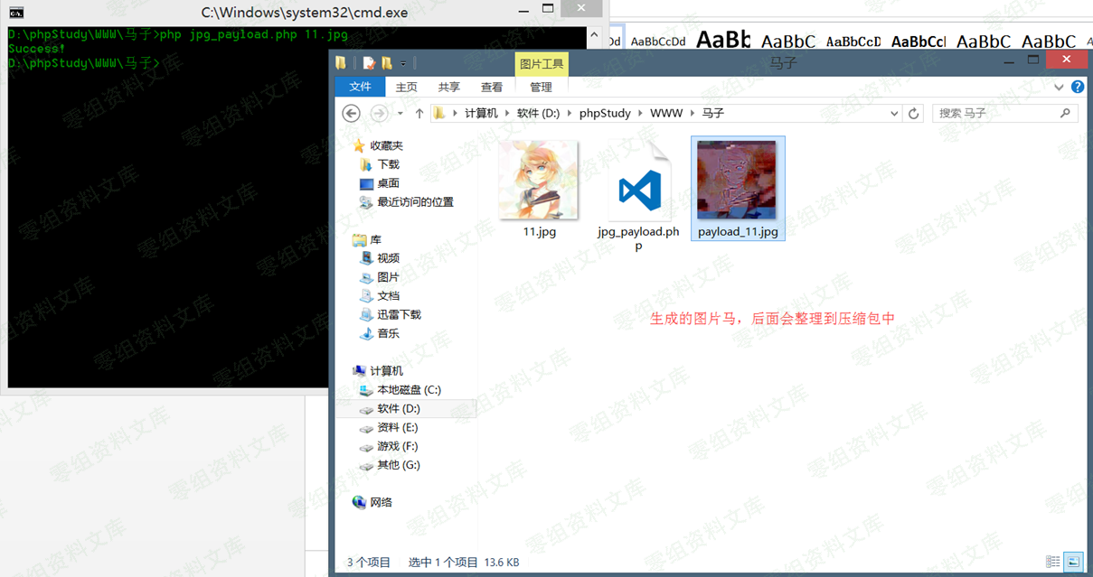 * 2.执行图片处理脚本脚本进行处理 php jpg_payload.php x.jpg