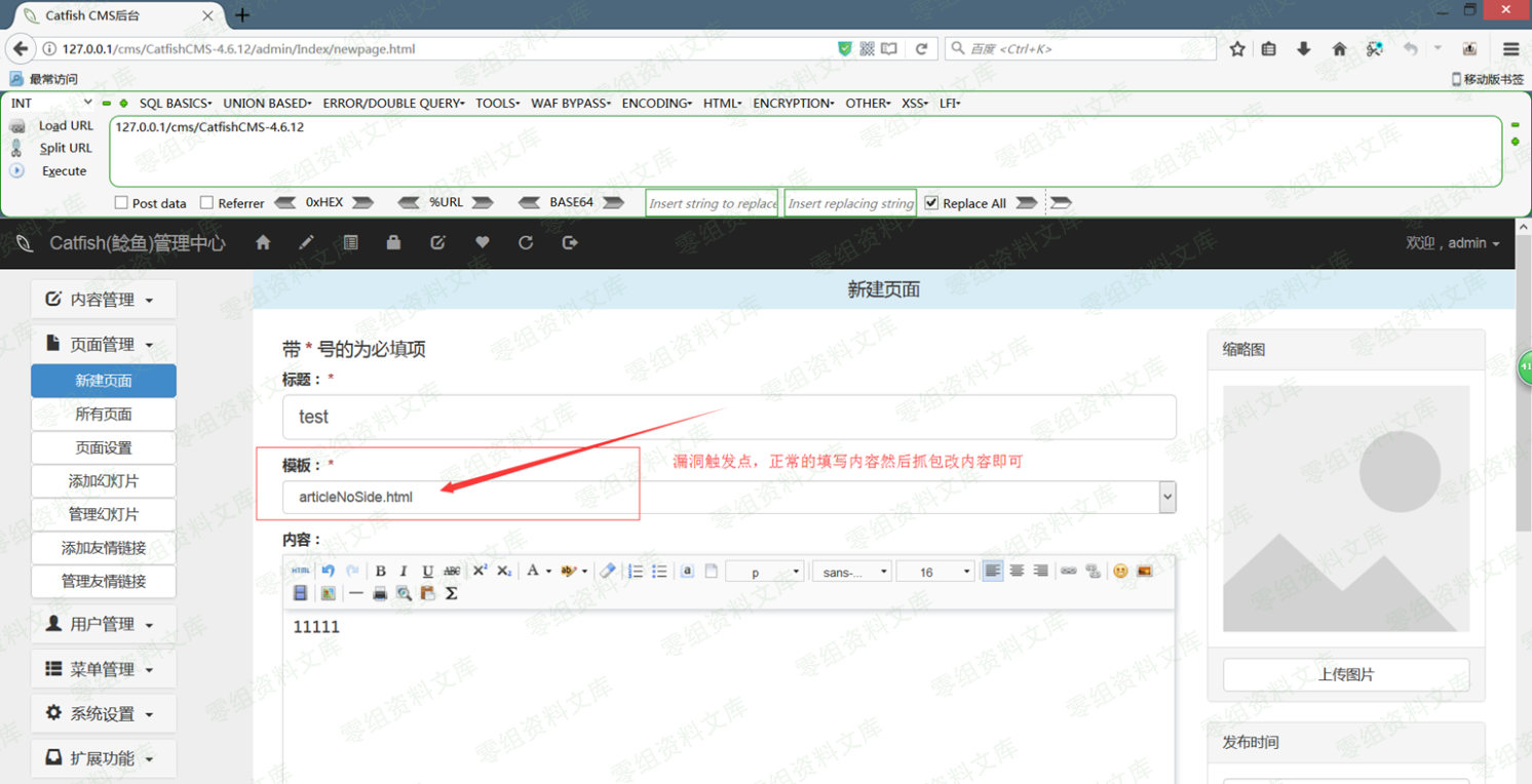 `http://url/cms/CatfishCMS-4.6.12/index.php/admin/Index/newpage.html`