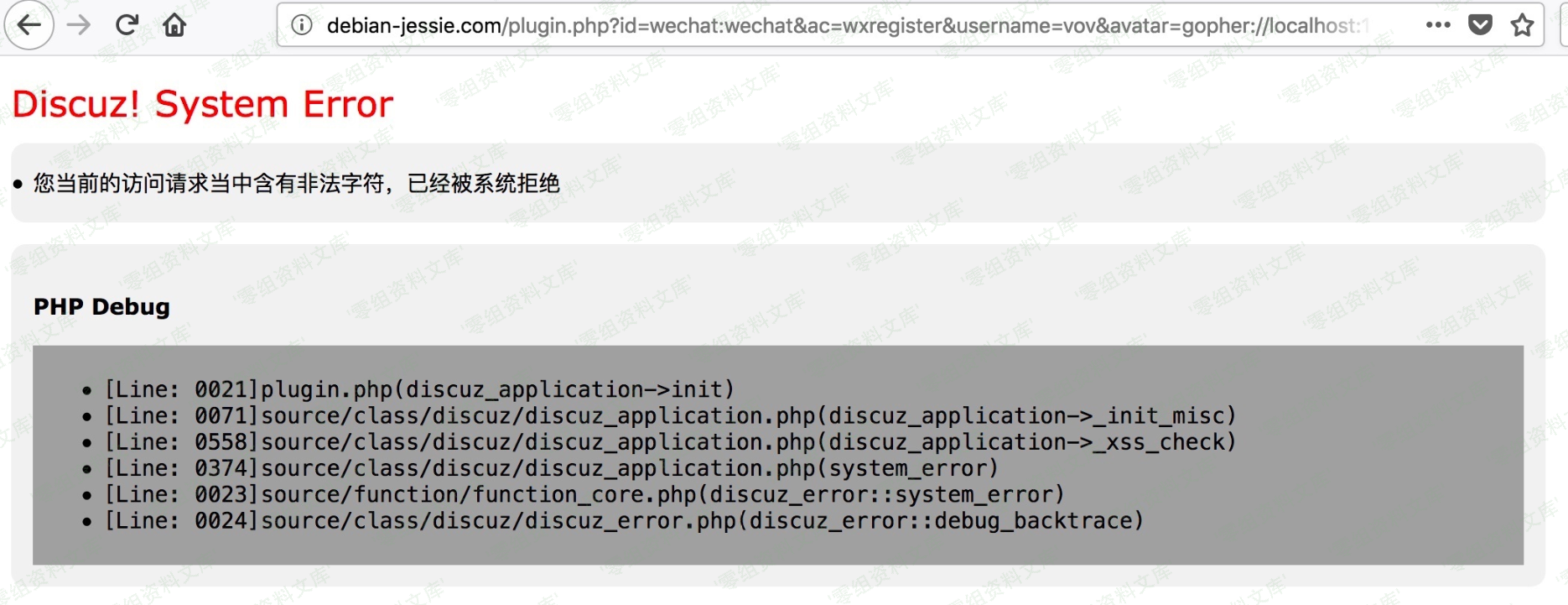 但是直接用它去 SSRF 是不可以的,会被`_xss_check`检测到特殊字符而被拒绝请求: