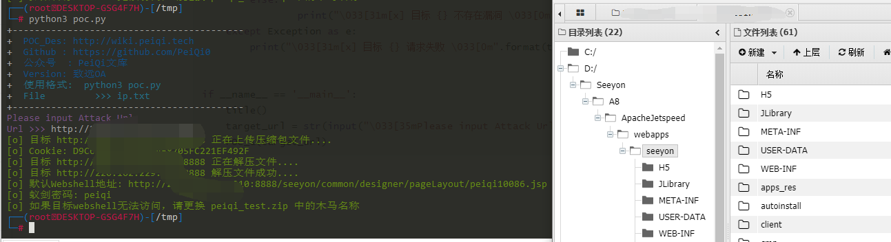 print(“\033[32m[o] 默认Webshell地址: {}/seeyon/common/designer/pageLayout/peiqi10086.jsp \033[0m”.format(target_url))