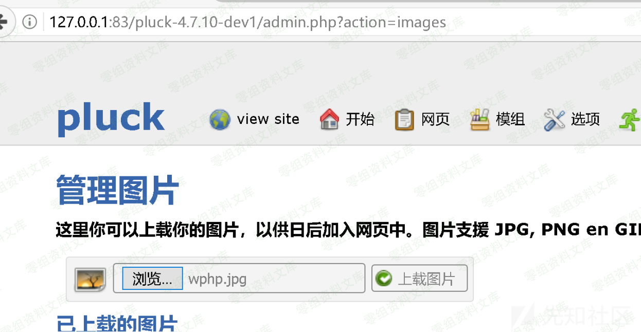 # Pluck CMS 4.7.10 后台 文件包含+文件上传导致getshell
