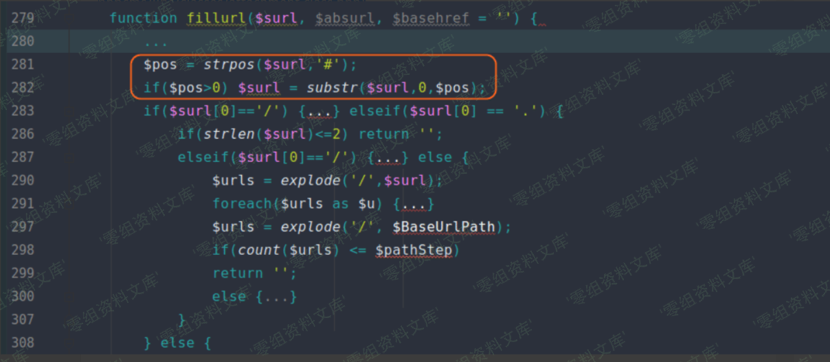 接着又使用 fillurl 方法对匹配到的远程图片地址进行处理,其实就是将 # 号之后的字符全部去除,例如 `http://xxxx/1.php#a.jpg` 会被处理成 `http://xxxx/1.php` 。(下图对应文件位置:phpcms/libs/classes/attachment.class.php)