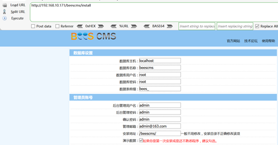 浏览器访问http://192.168.10.171/beescms/install,开始安装