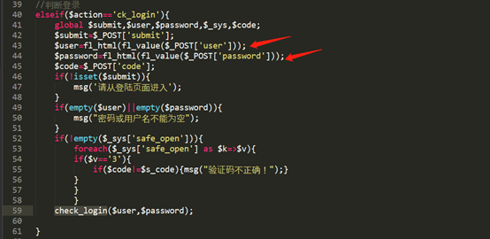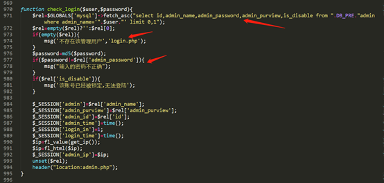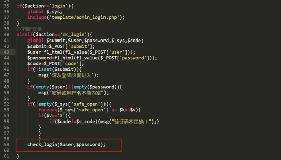 跟进`check\_login`函数,发现`check\_login`函数在验证用户是先验证用户名,然后验证密码是否正确,该处验证逻辑存在漏洞。