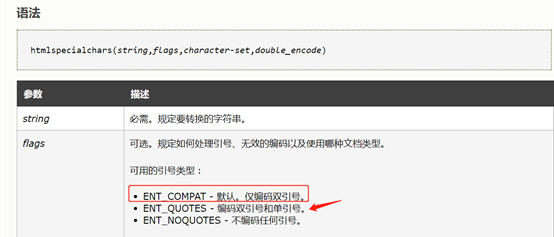 百度搜索`htmlspecialchars`函数,发现`htmlspecialchars`函数默认情况下只对双引号进行编码,可以看到这个版本的cms使用默认对参数进行过滤处理,此处存在单引号引入的漏洞。