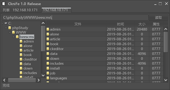浏览器访问后台页面http://192.168.10.171/beescms/admin/