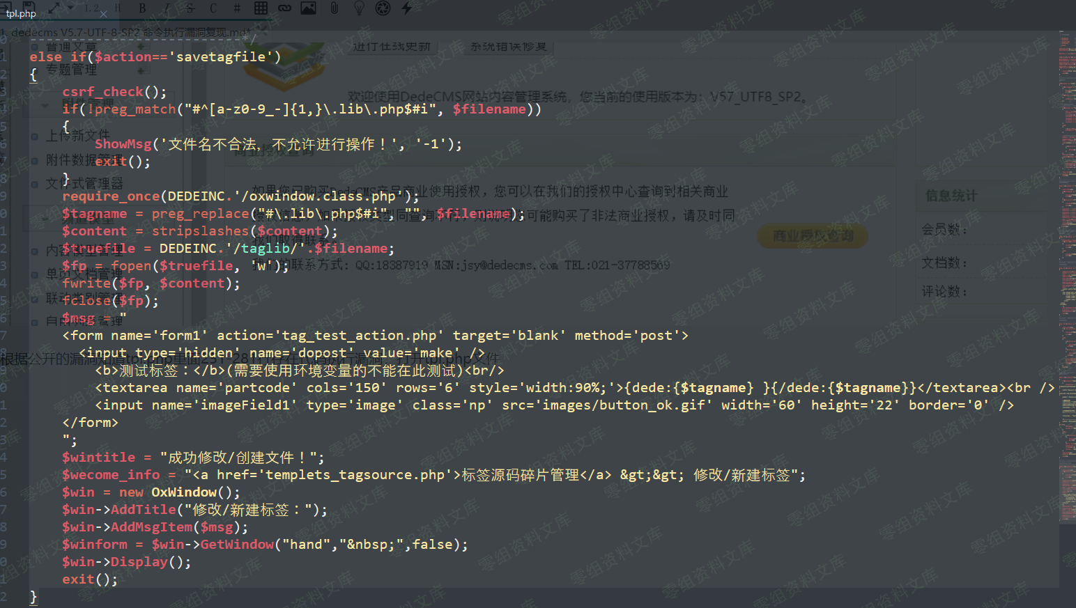 DedeCMS V5.7 SP2版本中tpl.php存在代码执行漏洞,攻击者可利用该漏洞在增加新的标签中上传木马,获取webshell