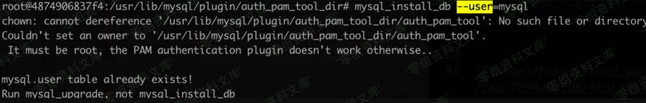 切换回root,在root权限下运行mysql_install_db脚本(触发修改chmod命令)