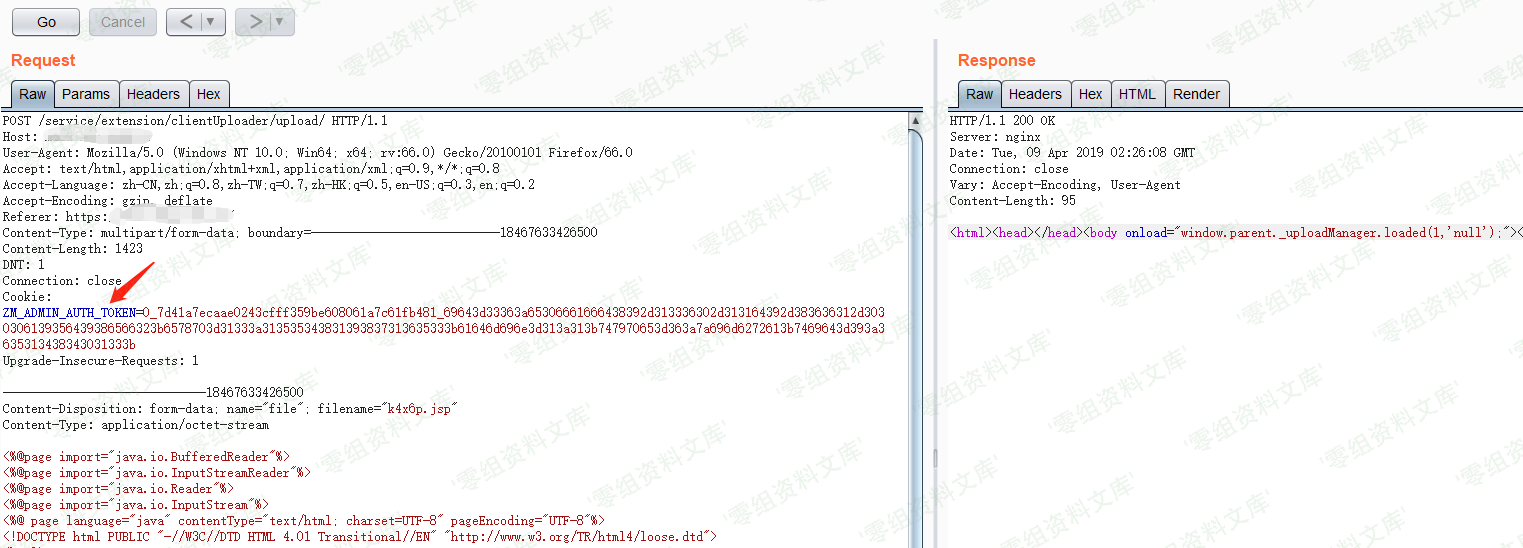 Webshell路径为/downloads/k4x6p.jsp,访问该webshell时需要在cookie中添加admin_toke。