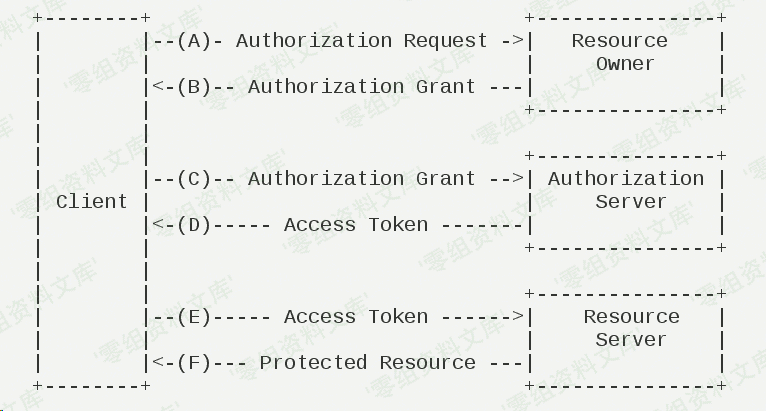 以上图为例。当用户使用客户端时,客户端要求授权,即图中的AB。接着客户端通过在B中获得的授权向认证服务器申请令牌,即access token。最后在EF阶段,客户端带着access token向资源服务器请求并获得资源。