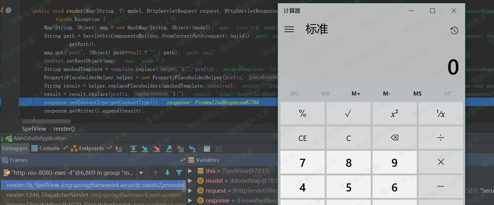 此后在页面渲染的过程中,将会执行页面中的Spel表达式${T(java.lang.Runtime).getRuntime().exec(“calc.exe”)}从而造成代码执行。