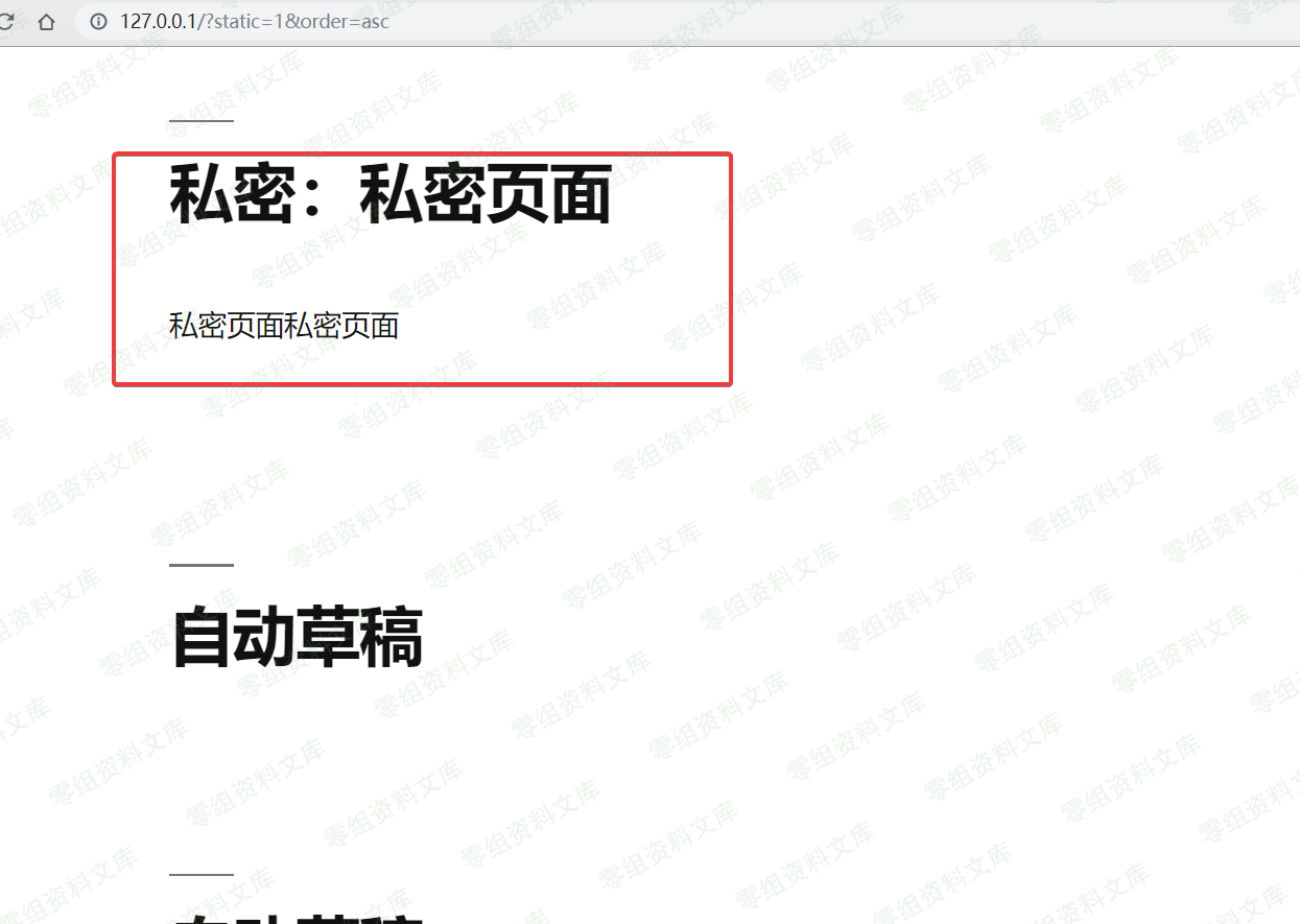 # CVE-2019-17671 WordPress <= 5.2.3未授权访问 ### 一、漏洞简介 * wordpress 爆出最新的查看未经身份验证的文章漏洞, * 该漏洞源于程序没有正确处理静态查询, * 攻击者可利用该漏洞未经认证查看部分内容 ### 二、漏洞影响 WordPress <= 5.2.3 ### 三、复现过程  登陆后台新建私密页面  随便填入内容,选择私密,发布  访问前台页面,退出登陆,模拟外部访问  #### 漏洞利用 直接访问,查看不了私密文章  输入payload访问,即可未授权访问所有文章 ```bash url+/?static=1&order=asc ```